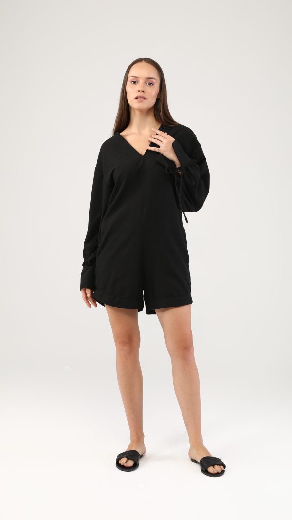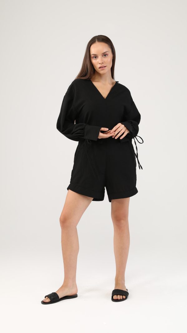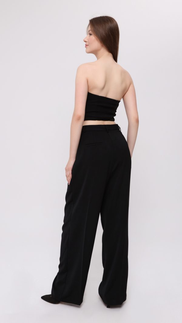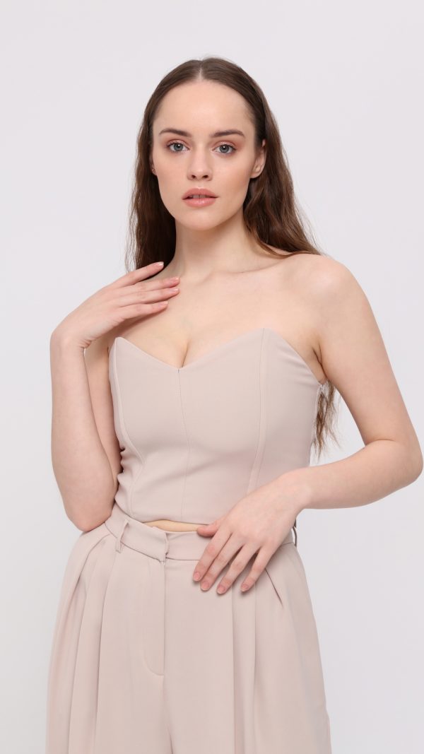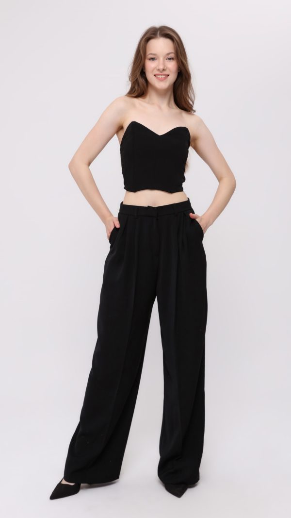 Uzun kollu, crop kesim sweatshirt ve bağcıklı, cepli, geniş paça pantolon takım